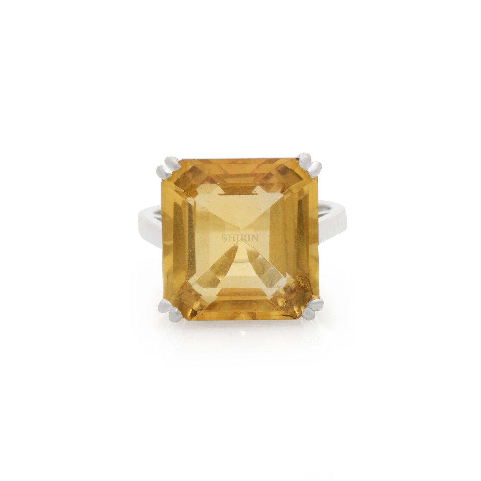 Genuine Citrine Stone: Features a natural square-cut citrine known for its warm golden hue and brilliant clarity.