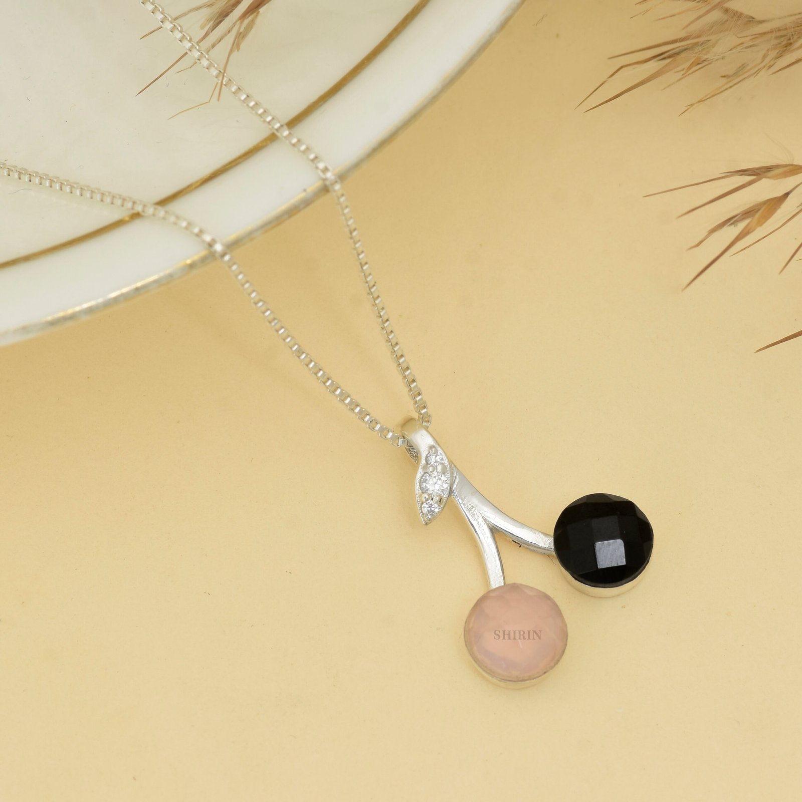 Be the first to review “Rose Quartz , Moissanite & Black Tourmaline 925 Pure Silver Cherry-Shaped Pendant”